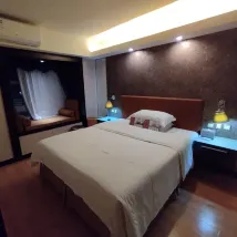 Отель расположен недалеко от Хуанбейлина. В нем есть все, от ресторанов с горячими блюдами до закусок и шашлыков. Персонал отеля также предоставляет очень хорошее обслуживание и имеет открывалку для бутылок вина. В отеле есть массажное кресло. Однако душевая труба в туалете сломана. Да, вода в душе очень жидкая, а на стенах комнаты пятна. В целом отель находится в отеле уже много лет.