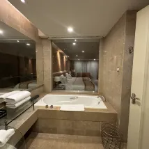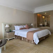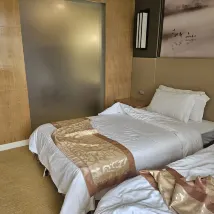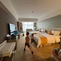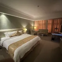 I learnt that the hotel is equipped with swimming pool and fitness room, but no prior notice was made for the unavailability of both when checking in. The fridge was just a decoration, no function at all. Not even a tea bag was provided in our room. I was forced to wake up at 7 AM while a construction site applying their machine. Shuttle bus was not a standard service, when hotel is a bit far from the nearest subway, that means we can only rely on taxi.