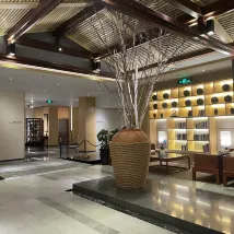 Обстановка отеля элегантно оформлена, регистрация заезда комфортна и чиста, а обслуживающий персонал очень внимателен. В первый день регистрации дверь номера не была закрыта должным образом. Когда мы вернулись, женщина на стойке регистрации терпеливо показала нам наблюдение за коридором, чтобы убедиться, что никто не вошел.