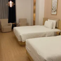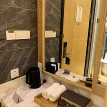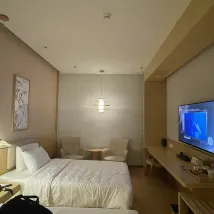 Я бы поставил ему ноль баллов, даже не один. Две девушки-администраторы в полдень в день нашего заезда были крайне грубы и с мрачными лицами. Мы заселились нормально, и я не понимаю, почему они были так враждебны! Номер был как гостевой дом — крошечный, в ванной пахло канализацией, дверца шкафа была сломана, и хотя окно выходило на улицу, оно было почти полностью загорожено, из-за чего в номере было очень темно. Номер 83... Я думал, что он на третьем этаже, но когда я спросил об этом сотрудника средних лет, который пылесосил, он грубо сказал мне спросить на стойке регистрации. Он сказал, что в отеле всего два этажа, и почему номер на втором этаже обозначен как 83...? Многие тренажеры были сломаны. Весь отель пропах дешевизной и низким качеством. Номер стоимостью более 750 юаней за ночь, пусть и не слишком дорогой, не должен быть таким ужасным! Не знаю, откуда взялись хорошие отзывы, но когда я выезжал, то увидел, что персонал просит оставлять хорошие отзывы... это было отвратительно.