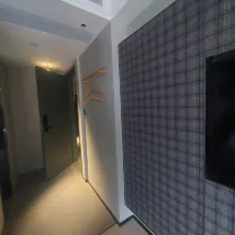Супер стильный небольшой, но отличный, чистый номер с супер удобной кроватью. Хороший напор воды. Все функционально. Отличный шампунь, есть все средства по уходу, тапочки в тумбочке. Если справитесь, то телевизор тоже есть, но управление на китайском языке. Стильный чайник, кружки в тумбочке.