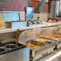 В номере протекла раковина или стиральная машина. В первый раз, когда я сообщил об этом, проблема не была решена. Во второй раз я долго искал причину, до 11 часов вечера. Проблема, о которой я сообщил, не была решена, и было оправдание. Они сказали, что не могут найти протечку. Я тоже этого не делал. Вы хотите, чтобы я её нашёл? Они не стали разбираться и не сказали ни слова. После стирки на полу всё ещё была вода. Ребёнок чуть не упал. Завтрак в отеле тоже сложно описать. На фото всего несколько блюд. Стоимость номера — 490 юаней, а впечатления крайне плохие.