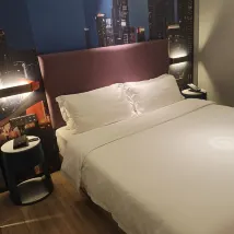 Номер хороший, с большими окнами от пола до потолка, просторный и светлый, со всеми удобствами и электрическими шторами. Напор воды в душе очень хороший, постельное белье чистое и удобное. Обслуживание леди на стойке регистрации было восторженным и зарезервировало номер. Есть терраса в саду, чтобы сушить одежду, что хорошо, и вы также можете посидеть и отдохнуть. Это экономически выгодно. У двери есть станция метро, а Raffles Mall находится рядом с ней. Мне было приятно остановиться здесь один раз, и я все равно решил остановиться здесь во второй раз. Рекомендую!