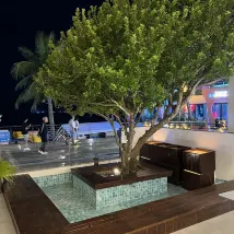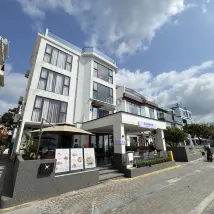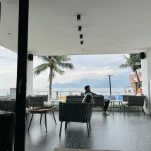Я привел сюда свою семью поиграть. Дама на ресепшене была очень мила. Когда мы добрались до пляжа, мы решили спонтанно зайти и посмотреть номера. Она провела нас по всем номерам по одному. Она вежливо и терпеливо представляла нас на протяжении всего процесса и давала нам несколько продуманных советов. Это было очень хорошо. Парень в баре с напитками тоже был очень мил. Он помог нам решить некоторые проблемы. После бронирования номера мы получили 20% скидку на напитки. Босс спускался вниз и во двор, чтобы проверить, не нужно ли гостям чего-нибудь. Он был очень ответственным и дал нам ракушки, когда мы уходили. Этот отель имеет хорошее расположение, а парковка находится недалеко. На первом этаже есть номера с прямым видом на море, что очень удобно для пожилых людей и детей. Семье так удобно сидеть во дворе, смотреть на море и есть шашлыки. В целом впечатления очень хорошие!
