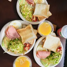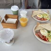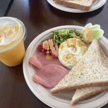 Обслуживание очень хорошее. Молодая девушка и молодой человек с энтузиазмом дают указания. Мы привели еще одного человека, чтобы он помог доставить завтрак, что очень приятно. Завтрак тоже вкусный. Все свежеприготовленное. Апельсиновый сок и кофе восхитительны, а морской бриз пробуждает прекрасное утро.