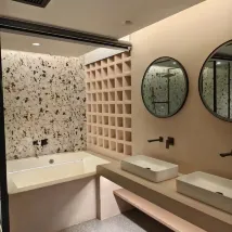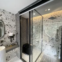 Номер в целом хороший, но я не понимаю, почему туалет и душевая спроектированы с прозрачными стеклянными дверями, а за дверью шторка, что очень неудобно... Сервис нормальный, но ресторан немного соленый.
