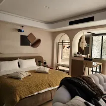 Сервис: Парень на стойке регистрации очень внимателен и рассказывает каждую деталь. Он подробно записывает потребности гостя, а затем удовлетворяет их один за другим. Ответ также очень быстрый. Когда мы приехали, был уже вечер, но нас еще не забыли напоить послеобеденным чаем.