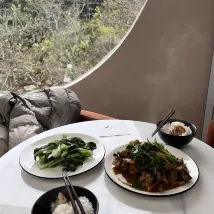 Это второй раз, когда я приехал в Yisu Mountain Creek. Погода была очень холодной, но мне все равно было очень комфортно. В прошлый раз, когда я приехал, отель предоставил мне только послеобеденный чай и завтрак. заказал здесь имбирь и зеленый лук, приготовленные шеф-поваром, с курицей и жареными овощами.