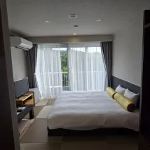 Beautiful Ryokan! The room I stayed in had tatami floors and western beds. The doors slide instead of open outwards like they usually do. Toilets are relatively small, but the shower had great water pressure and temperature! However we did not shower much because.. We showered at the Onsen instead since we were there to spend time! The Onsen is tattoo-friendly as confirmed by the check in staff, and the water really had skin smoothing effects. Yukatas are available at lobby area for all guests, and level two has a restaurant with microwave and ice machine outside for your konbini meals. No view from the room, but that's fine cos the Onsen itself was worth a visit. Steep short hill up to the lobby, but if you drive then that's fine. Free to use outdoor BBQ area, but didn't have the chance to. Rooms were comfy, sleep was good with minimal disturbance. Side note: my underwear got stolen at the onsen and I never managed to find it back again but that's fine cos it was worth the Onsen experience. Stayed two nights here, no regrets, would totally do it again! Oh and Onsen area has got numbered lockers to store your belongings but not your undies!