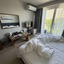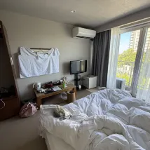 Этот отель расположен немного южнее города Сирахама Онсэн, на холме. Похоже на старый комплекс для размещения с горячими источниками, который был куплен и отремонтирован какой-то курортной компанией. Внутри здания местами есть загадочные ступеньки, как в старой гостинице, но стойка регистрации, номера и различные удобства были очень чистыми и аккуратными. Удобства в номерах включают телевизор, холодильник, кондиционер, множество розеток, душевую, Wi-Fi, бесплатную минеральную воду и зубную щетку в качестве удобства. Внутри здания есть большая общественная баня и торговые автоматы с напитками. В нескольких минутах ходьбы есть магазины и рестораны, а пляж находится в нескольких минутах ходьбы. Цена была низкой, поэтому я думаю, что это хороший отель, но я был немного обеспокоен тем, что там было не так много сотрудников, и что они, казалось, были очень заняты, потому что они были иностранцами.