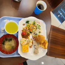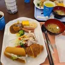 Отель был чистым и приятным. Рядом находился круглосуточный супермаркет, что было очень удобно. Можно было зарегистрироваться в автомате, даже не будучи членом клуба, что было удобно. На утреннем шведском столе было довольно много людей, хотя я пришёл рано. Завтрак подавали в холле, сразу после того, как я вышел из лифта, что было довольно интересно.
