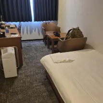 Номер был довольно просторным для одного человека. Я мог поставить чемодан у изножья кровати, а между креслом и кроватью почти не было места, но это типично для японских отелей. Этот отель находится очень близко к вокзалу, и завтрак был фантастическим. Я оба дня заказывала западный завтрак, потому что не люблю белый рис рано утром. Он был великолепен и действительно поднял настроение. Настоятельно рекомендую остановиться здесь.