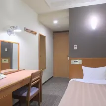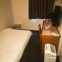 Дверь открывается внутрь и оснащена замком безопасности и блокиратором. Номер небольшой, стулья придвинуты вплотную к кровати, так что места не остаётся. В туалете 🚽 колени упираются в дверь, когда садишься (впервые зимой я столкнулся с тёплым туалетом 👍). На туалетном столике я обнаружил около 4 см волос. Телевизор показывает только несколько местных каналов. Расположение отличное, всего через два светофора от станции Сидзуока. Удобства тоже хорошие (можно постирать и высушить одежду, разогреть еду в микроволновке и купить воду в автомате самообслуживания). Обслуживание на стойке регистрации и в уборке, с которыми я общался, было очень хорошим.