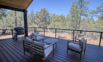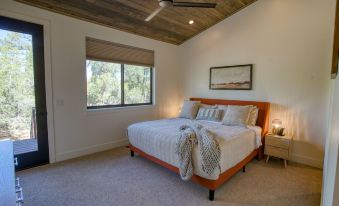 Rest and recharge when you stay at our beautiful, brand new cabin, situated right off the national forest in the private golf community of Torreon. A perfect home-away-from-home for your family, each bedroom boasts brand new comfy mattresses, charming décor, and carefully curated amenities, such as sound machines, room darkening shades, and more. The TWO master bedrooms feature their own en-suite bathroom for maximum convenience, with a custom designed shower, soaking tub, and walk-in closet.