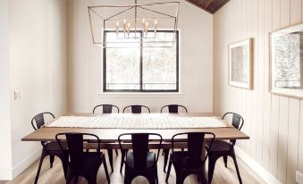 Stunning, spacious great room with vaulted tongue and groove ceilings, a cozy fireplace, Frame Smart TV, and dining area for 8+. Our fully equipped kitchen includes all the necessities for preparing meals and an oversized island.