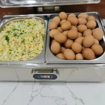 服務非常到位,從總經理到大堂經理到服務員都非常認識負責,服務意識非常強!今天我仍然要評價這的早餐,花樣多,注重菜的口感,主食有各種健康飲食比如紅薯,山葯,玉米等。