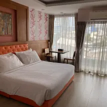 В отеле очень хорошее обслуживание. Стоимость номеров в Чонбури очень низкая. Есть бассейн и полностью оборудованный тренажерный зал. Красивый номер, хороший вид.