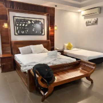 Ответ от объекта размещения: Уважаемый Фумото! Благодарим вас за подробный отзыв. Мы рады, что вы чувствовали себя комфортно и оценили наши просторные номера, отличный кондиционер и дружелюбное обслуживание. Наша команда будет рада узнать, что их доброжелательность оставила положительное впечатление. Будем рады приветствовать вас снова во время вашего следующего визита в Сиемреап! С наилучшими пожеланиями, Руководство отеля.
