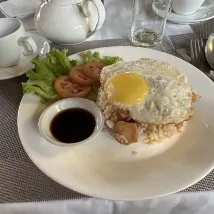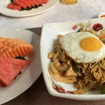 На бесплатный завтрак можно выбрать одно из нескольких меню, но мы рекомендуем американский сет и жареный рис по-азиатски.
