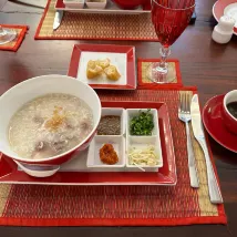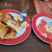 ⑵Завтрак богатый, можно заказать самостоятельно, обычно 4 вида тостов + английский или местный специальный завтрак + сок или кофе или чай + послеобеденные фрукты, вкус очень хороший.