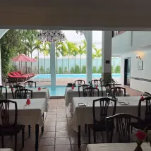 Отель относительно небольшой, находится на небольшой дороге, окружающая среда плохая, поэтому он теряет один балл. Некоторые водители тук-туков тоже не знают. Сервис в отеле по-прежнему очень хороший, один балл вычитается, потому что китайского сервиса практически нет. Удобства выполнены в приличном местном стиле, но не слишком выдающиеся, поэтому я не дал ему полной оценки. Завтрак был средним. Вкус в ресторане средний, но цены почти пятизвездочные. Поездка на тук-туке от отеля до Сиемреапа стоит 2 доллара США.