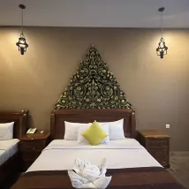 Расположение хорошее, но когда я ехал на тук-туке, они не смогли проехать, потому что нам нужно было проехать мимо рынка. Чистота хорошая, но туалет немного старый. Что касается услуг, они действительно услужливы. В целом это здорово, номер очень большой.