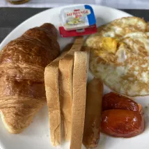 Вкусный завтрак, но мне стало плохо из-за того, что комната была слишком пыльной. Кровать была слишком жесткой и много комаров.