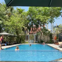 Мы были семьей из четырех человек, останавливались в этом отеле. Персонал очень дружелюбный и услужливый, чувствуешь себя как дома. Они помогают организовать транспорт для поездок по городу, и водители тук-тука и машины очень милые. Я никогда не видел, чтобы все сотрудники отеля были очень дружелюбны и прилагали все усилия, чтобы вам было комфортно. Завтрак «шведский стол» хорош. Бассейн очень чистый, а тренажерный зал удовлетворяет основные потребности.