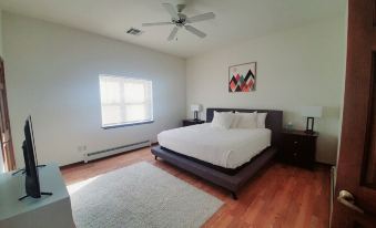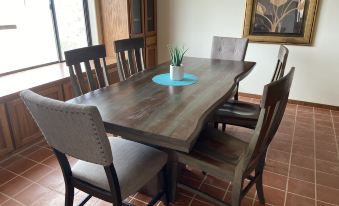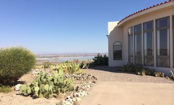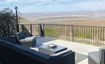 Our amazing place is the largest available in the area, with the most beautiful nature surrounding! Located across from 360,000 acres of nature preserve, and adjacent to BLM lake/land, this is the ultimate remote desert escape! The housing decor is a blend of mid century modern with a southwestern flare. The sprawling 4,200 square foot, single level home is fresh, clean, welcoming and peaceful! There are 4 beds, 2 King and 2 queen. Varying firmness/plush levels to accommodate preferences. There is a fabulous propane fireplace and relaxing patio! Deer will walk right up to the patio- which boasts a grill and oversized section to relax and enjoy the sunset. It is perfect for people who not only love nature and embrace privacy, but enjoy a beautiful home and relaxing in a jetted tub at the end of the day! The house is on the bluffs offering an unbeatable view of the beautiful distant shoreline, mountains, and open desert sky. The area is exceptionally quiet, offering the most beautiful sunsets you'll ever experience. This enchanting escape is perfect for couples, groups, and families! We include a lake pass which allows you access to not only swimming, but boat rentals and jet ski rentals! Or you can head into town and enjoy the hot springs! You’ll feel as though your in an amazing desert hideaway- but only a short drive to town! There is parking both within the two car garage, and RV/boat parking!About pets:No pets allowed.Only very well behaved pets allowed upon approval..About checkOut:Check out before 11:00 AM.About children:Children allowed: ages 0-17.Guest to provide infant sleep accommodations.About checkIn:Check in after 4:00 PM.About smoking:Smoking is not permitted.About minBookingAge:Minimum age to rent: 21.About events:Events allowed: family gatherings, birthday parties, weddings.Maximum event attendees: 20,Prior approval required.