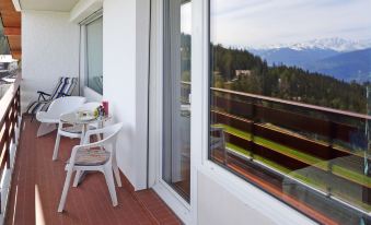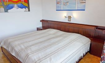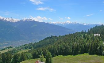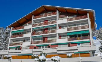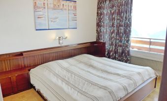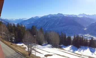 Comfortable apartment house "La Clairière des Barzettes A/B/C". In the district of Barzettes, 2.5 km from the centre of Montana, in a quiet, sunny position, 2.9 km from the lake, 700 m from the skiing area, south facing position. In the complex: lift, storage room for skis, central heating system. Public car park at 700 m, extra. Shop 2.2 km, supermarket 2.4 km, restaurant 2.2 km, bakery 1.1 km, bus stop "Clairière" 10 m, railway station "Funiculaire Montana Gare" 1.9 km, bathing lake "Moubra" 3.3 km. Golf course (18 hole) 4.3 km, skisport facilities 700 m. Well-known lakes can easily be reached: Grenon 2.9 km, Etang Long 4.2 km. Please note: car recommended. Ski bus (free of charge). Additional accommodations can be booked. "Clairière des Barzettes B16", 2-room apartment 45 m2 on 5th floor. Comfortable and beautiful furnishings: living/dining room with 1 sofabed (133 cm, length 195 cm), cable TV, flat screen, hi-fi system, DVD and electric shutters. 1 room with 1 double bed (200 cm, length 200 cm). Kitchenette (oven, 4 ceramic glass hob hotplates, toaster, kettle, electric coffee machine, Capsules for coffee machine (Nespresso) extra, raclette grill, fondue Set (cheese)). Shower/WC. Balcony, south facing position. Terrace furniture, deck chairs (1). Very beautiful view of the mountains and the valley. Facilities: hair dryer. Internet (WiFi, free). Please note: non-smokers only. Maximum 1 pet/ dog allowed.