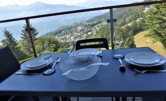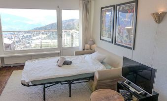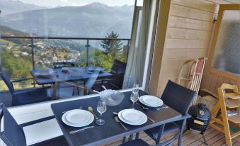 Comfortable, quiet apartment with a beautiful view of the mountains. Close to bus stops providing access to the start of the ski lifts or the center of Crans or Montana