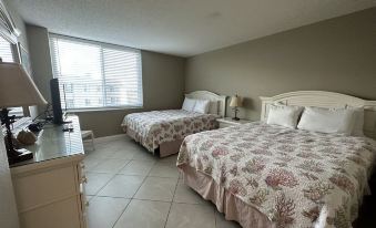 Our 2 bedroom 2 bath sleeps 6 comfortably and will be stocked with linen, beach towels, private beach chairs to take to the beach, just bring your swimsuit and sunglasses! King bed in Master bedroom with shower, dual vanities, private door with toilet and extra large walk in closet. The 2nd bedroom offers 2 Queen beds, dresser, TV and walk in closet. Adjacent to the 2nd bedroom is large full bath with sink, vanity, large tub and shower. Linens for 4 per bathroom provided plus toiletries to kick start your stay.