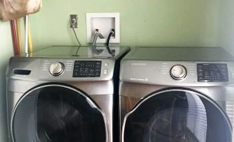 The fully equipped eat in kitchen has brand new wood looking porcelain floor, and fully stocked with almost everything that you may need. The unit also offers a laundry closet with a stackable washer/dryer.