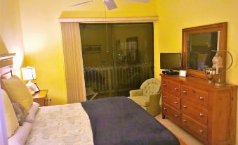 The master bedroom also has high ceilings and floor to ceiling sliding glass doors to the balcony that overlooks the lake. The master bedroom has a king size bed, new carpets, and a huge walk in closets. The master bath has recently been remodeled with stone tile, walk in shower, granite vanity sink, granite powder room vanity.