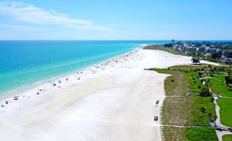 When you're ready to explore, it's just a quick wander down to the soft powder of America's #1 beach for an afternoon of sea and sand. Look out over the turquoise Gulf and dig your toes into Siesta's world-famous quartz sand.