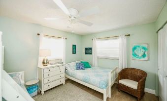 Inside, the sun-filled rooms are tastefully decorated in tropical chic. White plantation shutters, sea-foam walls and a southwestern exposure bathes everything in a soft, beautiful sunlight.