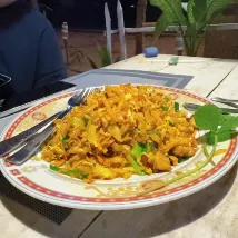 Abbiamo pernottato qui due notti per poter godere delle due attrazioni principali della zona. I ragazzi sono molto disponibili ed il responsabile è un giovane simpatico che ci sa fare! La posizione è molto tranquilla anche se non molto lontano dai locali. Camera buona e anche la colazione servita all'ultimo sulla terrazza che guarda sulla rocca. Di notte la strada sterrata è completamente buia e vi sconsiglio di andarci a piedi meglio se con una macchina o un tuktuk.