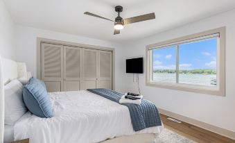 Room for multiple families where everyone has their space. 2 ensuite bedrooms upstairs and an additional queen bedroom downstairs. There’s room for all the kids in the nautical themed bunk room downstairs. The third bathroom is located conveniently downstairs next to the built in bar with beverage fridge. So you can grab yourself a refill and head right back out to the lake.
