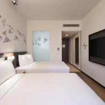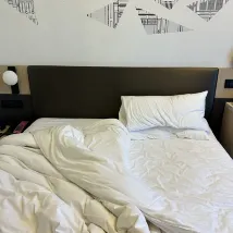 Мы забронировали номер с двумя кроватями. Комната оказалась очень просторной, а главное – кровати были шириной 1,5 метра, что идеально для семейного отдыха. Мои дети уже взрослые, и мы вчетвером без проблем разместились в одном номере. В отеле есть шаттл до станции метро. Обязательно сфотографируйте расписание шаттлов у входа в лобби, чтобы заранее спланировать свои поездки. Мы пробыли здесь четыре ночи и остались очень довольны.