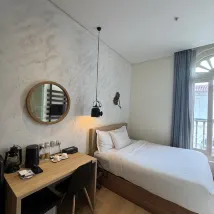Внизу есть улица с множеством ресторанов. Станция метро находится примерно в 600 метрах, но есть ещё и станция метро примерно на таком же расстоянии в обе стороны. В этот раз я поехал туда из Лаванды, но позже обнаружил, что можно было бы выбрать и Бугис. Сейчас пик летнего сезона, поэтому цены на номера довольно высокие. Номер маленький, без окон, и звукоизоляция не очень. Обслуживание, правда, отличное. Сотрудница на стойке регистрации, говорящая по-китайски, очень любезна. Выезд также удобен, есть камера хранения багажа. Депозит при заселении не требуется. Если номер свободен, вам организуют раннее заселение, что довольно удобно. Бесплатный однодневный тарифный план мобильной связи тоже приятный бонус.