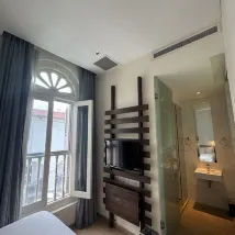Отель расположен всего на двух этажах. Мой номер выходил на дорогу, и даже ночью было слышно проезжающие машины, из-за чего мне обычно приходилось просыпаться до 7 утра. Кондиционер в номере работал со сбоями: он постоянно сильно охлаждал и издавал неприятный шум, что мешало спать. Персонал на ресепшн не смог решить эту проблему, поэтому последующие два-три дня мне приходилось спать с выключенным кондиционером. Также были проблемы со сливом в ванной комнате – после душа вода капала не менее получаса. Звукоизоляция очень плохая; храп из соседнего номера был слышен абсолютно отчетливо. Меня не проинформировали, что для уборки номера нужно нажимать специальную кнопку. В итоге, за все четыре ночи моего проживания номер ни разу не был убран. Полотенца имели странный запах, и я не был уверен в достаточной чистоте постельного белья.