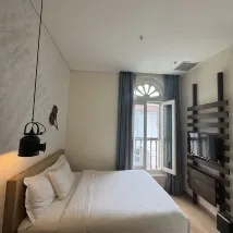 Очень неудобные ступеньки прямо в номере – это крайне нелогично. Чистота также оставляет желать лучшего. Полотенца и подушки были пожелтевшими, с явными пятнами, выглядели старыми и грязными, вызывая сильный дискомфорт. Если бы отель не отказал в бесплатной отмене бронирования, я бы тут же сменил гостиницу. Единственным плюсом является расположение рядом с популярной улицей. Когда я позвонил на ресепшен с просьбой заменить подушки, мне ответили лишь «извините» и ничего больше. Совершенно не было желания помочь или решить проблему. Людям, ценящим чистоту, категорически не советую останавливаться здесь!