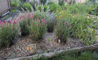 We also have a shady backyard patio with plenty of seating. You've got your own place to sit and enjoy the fresh South Dakota air, plus a new park model charcoal grill. In the winter, we keep it locked in the garage, but we can roll it out if you request it anytime all year long. (We provide the grill and grill tools--you'll need to pick up your own charcoal, unless we have some left behind from previous guests.) We're working to bring the front and back gardens back to their former glory. In the summer, you're welcome to help yourself to some rhubarb from our patch or cut some flowers from our wildflower garden.