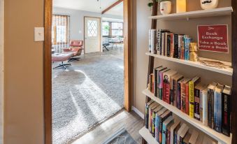 We provide Kuerig coffee and tea. If you're a coffee purist, there's a teakettle and a french press on the shelf for you to use, along with ground coffee. The house also includes a book exchange shelf and has puzzles and games for you to enjoy.