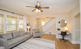 The moment you walk in the door you will feel right at home in this warm and inviting 3 bed, 2 bath, Art Deco home. Centrally located just a few blocks from historic McKennan Park and only 5 minutes from downtown, you couldn’t ask for a better location to take in a show, experience local culture or simply enjoy a relaxing weekend away. The fenced in back patio, adorned by beautiful large trees, creates the perfect atmosphere for a peaceful dinner by the fire-pit with friends & family.About pets:No pets allowed.About checkOut:Check out before 11:00 AM.About children:Children allowed: ages 0-17.About checkIn:Check in after 3:00 PM.About smoking:Smoking is not permitted.About minBookingAge:Minimum age to rent: 25.About events:Events allowed: family gatherings and birthday parties.Maximum event attendees: 10.