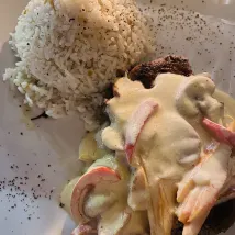 Еда потрясающая! Однако вам нужно подготовиться к лестнице! 🥹 вам нужно пройти как минимум 50 шагов до своего номера и еще тысячу (это немного утрирую) до парковки.