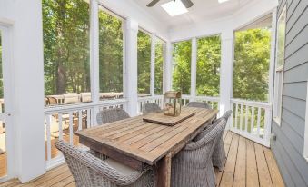 • Dining Accommodations: The main level has two indoor dining areas, each with seating for 8, plus an adjacence enclosed screened-in dining area with seating for an additional 8 (that's room for 24)
