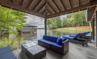 • Boathouse with new Trex Decking, Covered Seating, Open Areas, Bar, Ceiling Fan, Cable 55" TV, Bluetooth Stereo, and Refrigerator. Jumping platform and rope swing just added!