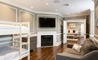 The master suite - the second of three "family suites" starts with a fabulous morning room equipped with a wet bar, beverage fridge, and comfy chairs to decompress. Moving along you'll find the first of two sleeping quarters in the master wing outfitted with a twin over twin bunk bed, loveseat, gas fireplace, and TV. Finally, moving to the end of the master is another bedroom with a luxurious king bed, gas fireplace, TV, and unbelievable walk-in closet. Finally, pamper yourself in the full bath boasting a claw foot soaking tub, huge walk in STEAM shower for two, and double vanity.