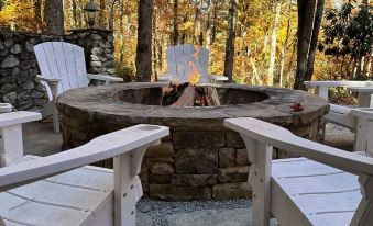 Family-owned home since 1980. We recently renovated the entire home with new modern fixtures in the kitchen and bathrooms, locally milled wood floors, HVAC, Smart TV’s, WI-FI, . There are two interior fireplaces, one gas and the other wood burning. There is a large deck off the main floor and another one on the bottom floor nestled in the trees with market lights. There is an additional screened in sunroom for afternoon reading and naps. There is a huge firepit off the main floor and another fire pit down a path on the property. A perfect getaway for multi-families, group retreats, golf trips, or just a few. The main floor is just one step up from the driveway for anyone with limited or unpredictable mobility.